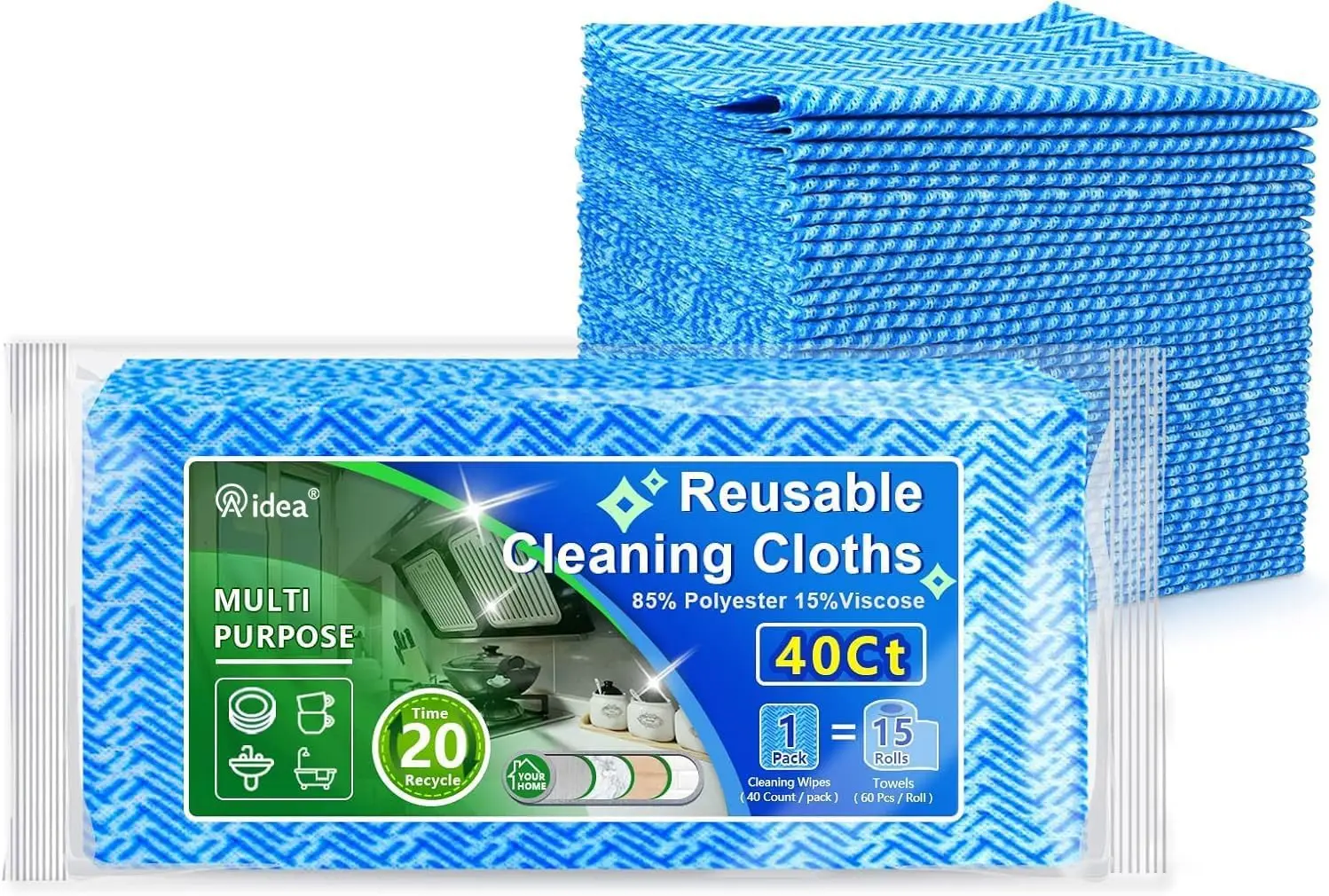 Cleaning Cloths, Super Absorbent 40 Pack, Reusable